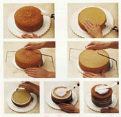 Kuchen trennen, Kuchen füllen, einstreichen und somit Fondant tauglich machen, Massa Ticino (Fondant) verarbeiten, Einkleiden und Torte dekorieren